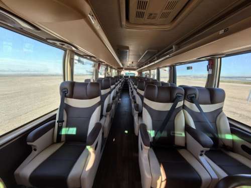 安排 VIP 三排座椅,提供寬敞舒適之乘坐空間,以降低長途移動之疲勞感並提升整體旅程品質。實際使用車型將依各地區供應狀況及現場調度為準,若無法提供三排座椅,將改以豪華 45 座巴士替代安排。(※注意:車型與相關圖片僅供示意參考)