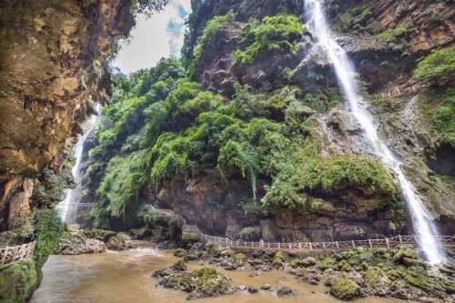 位於貴州黔南荔波,是以原始森林、峽谷、伏流、地下湖為主體的景區,景觀峻險神奇、氣勢雄峻磅讛,大七孔最為震撼的還是那高穹聳立的天生橋,走過棧道的三分之二處,有一橫跨河兩岸的天然巨岩,是喀斯特是貌奇觀之一,俗稱天生橋,被專家們譽為“大自然神力所塑的東方凱旋門,大七孔以進入景區的一座大七孔古橋而得名。充滿了神秘、奇特的色彩。