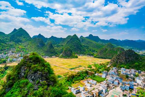 這是一座座奇美的山巒,與碧綠的田野、彎曲的河流、古樸的村寨、蔥郁的樹林融為一體, 構成大自然中最佳的生態環境,形成天底下罕見的峰林田園風光。國民政府前軍政部長何應欽故居、 北伐軍護法軍總司令王電輪將軍故居皆坐落於峰林之中。 明代著名地理學家、旅遊家徐霞客曾兩進 興義對萬峰林進行考察並給予了高度的評價,他賦詩雲: “ 天