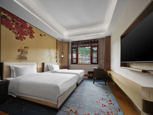 隸屬於全球著名的希爾頓酒店集團其旗下的高端品牌,飯店擁有一個1200平方米的無柱式大宴會廳及8個多功能廳,擁有 300 間客房及套房,配備全景落地窗,可俯瞰虹山湖景或安順城市天際線。