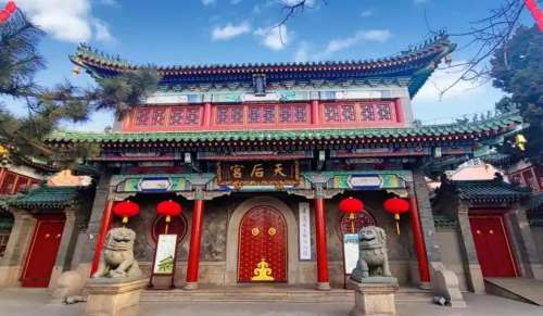 天后宮,又稱小直沽天妃宮、娘娘宮,位於天津市南開區古文化街80號,始建於元泰定三年(1326年),是天津市區較古老的建築群,也是中國現存年代較早的祖媽廟之一。天后宮坐西朝東,佔地5352平方米,建築面積1734平方米。沿中軸自東向西依序有戲樓、幡桿、山門、牌樓、前殿、正殿、鳳尾殿、藏經閣、啟聖殿。