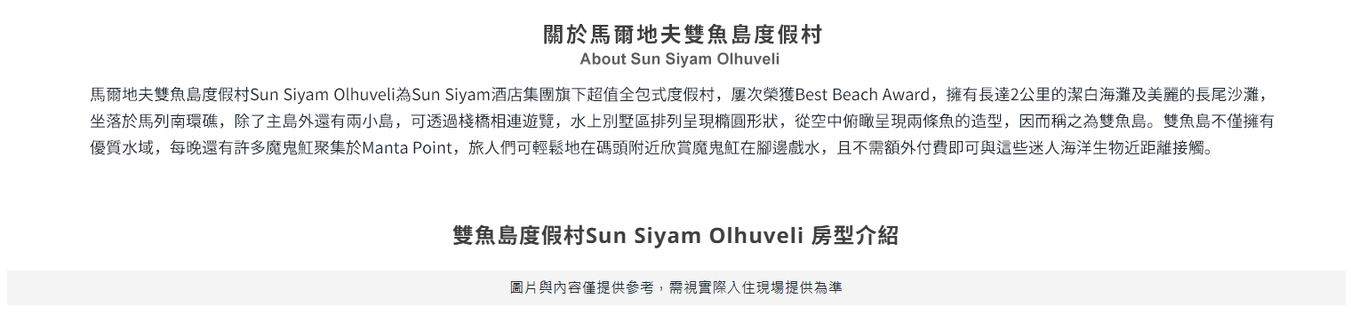 超值一價全包服務/屢獲Best Beach AwardSun Siyam集團旗下四星渡假村