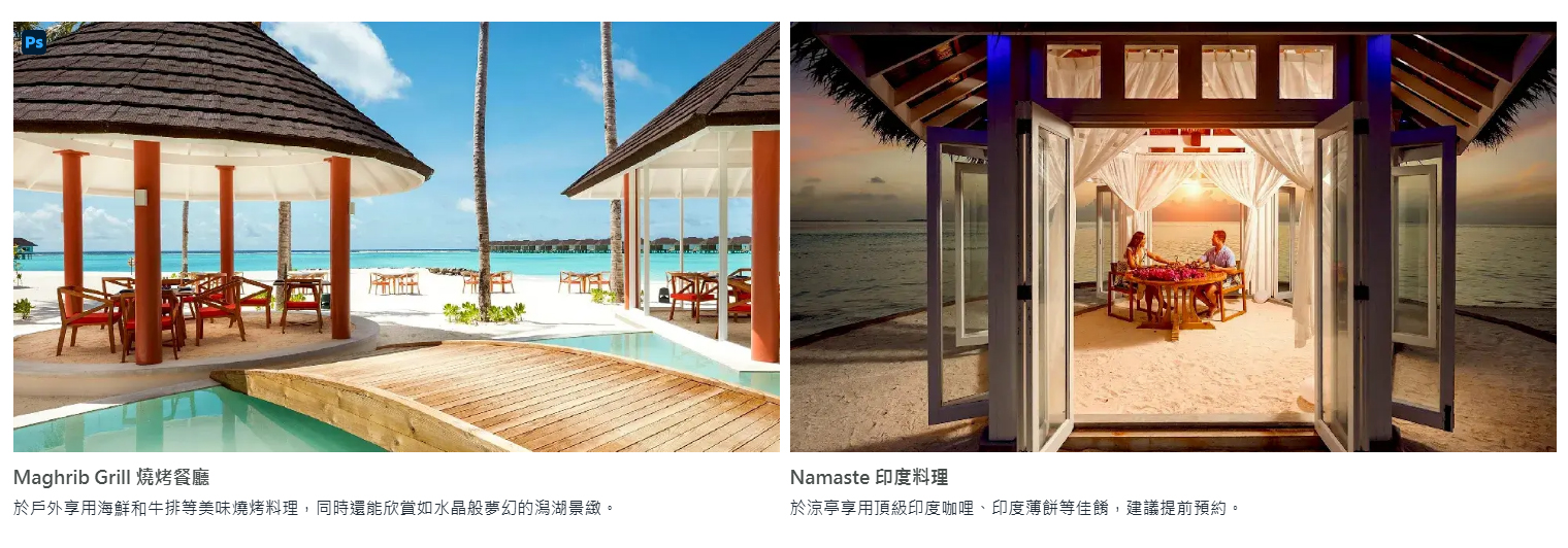 註:Sunset Restaurant 供入住主島客人使用、Malaafaiy Restaurant 供入住夢幻島客人使用