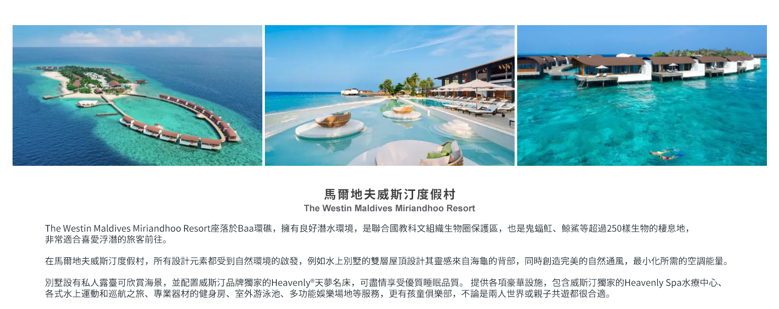 馬爾地夫~全包式~威斯汀渡假村 The Westin Maldives Miriandhoo Resort |
