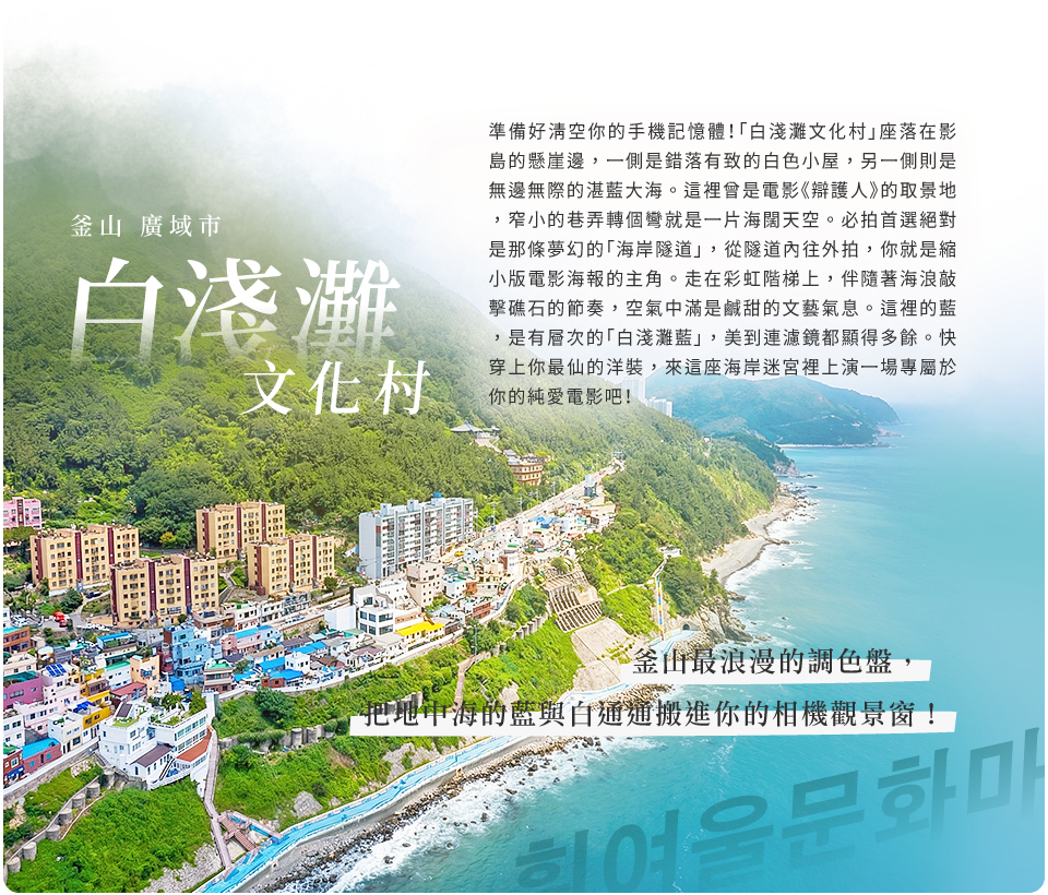 釜山近年最受歡迎的海岸系景點,擁有壁畫巷弄、海景視角與文青感小店。這裡不像觀光區那麼擁擠,反而更能感受到釜山在地生活氛圍,是喜歡拍照與慢遊旅客的最愛。